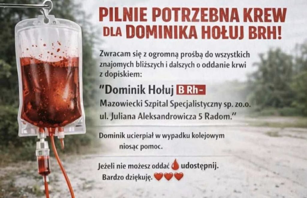 Dziś jednak najważniejsze pozostaje jedno: realna pomoc. Apel o krew dla Dominika Hołuja wciąż jest aktualny, a każda oddana jednostka może przybliżyć go do powrotu do zdrowia.